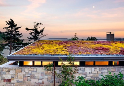 Плоская зеленая кровля в частном доме требует устройства разуклонки и надежной технологии гидроизоляции. Внутренняя система водостока оборудована водосточными воронками, устанавливаемыми с применением герметиков. Качественное устройство всех примыканий и узлов гарантирует отсутствие протечек в будущем и позволяет эксплуатировать здание с наивысшей эффективностью. В качестве покрытия крыши коттеджа может применяться EPDM и TPO мембраны Firestone. Выбор материала зависит от условий и режимов эксплуатации кровельного покрытия объекта.