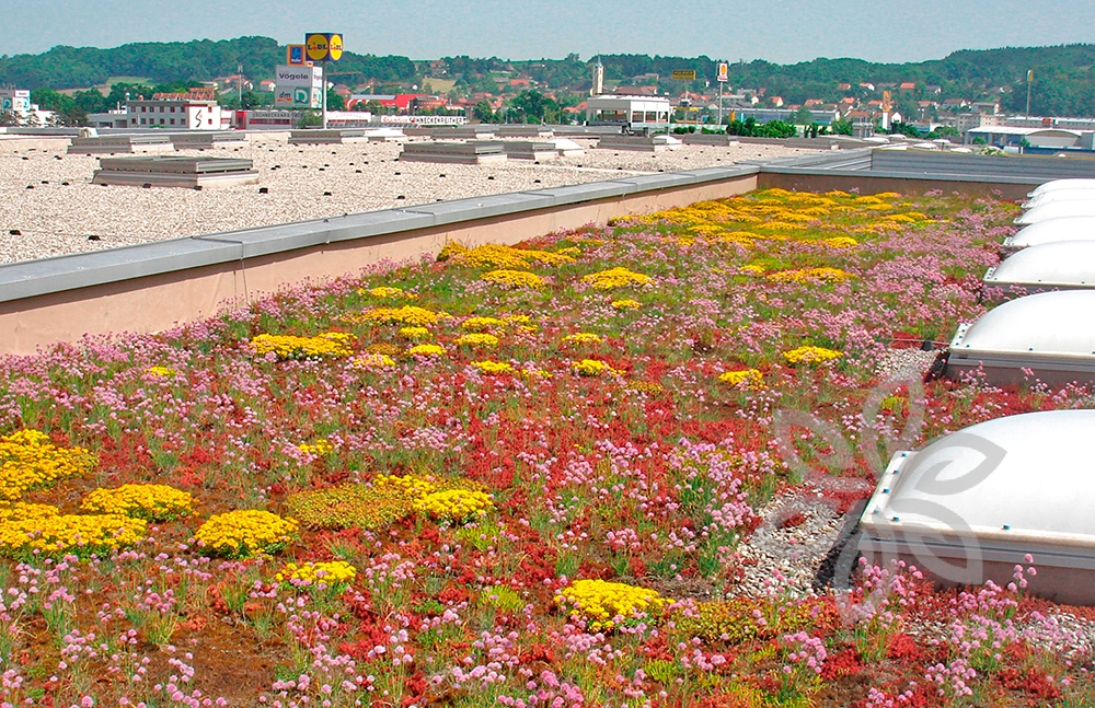 REWE, Linz, Австрия - Мембрана UltraPlyTPO, балластная зеленая кровля